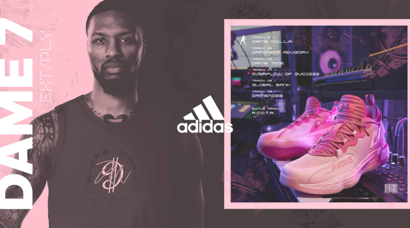 adidas推出全新Damian Lillard標誌籃球鞋款Dame 7 EXTPLY(Dame 7 EP),備有兩款配色:Dame D.O.L.L.A.及Opponent Advisory,「EXTPLY」代表迷你專輯(Extended Play),突顯Damian Lillard籃球巨星與饒舌歌手的雙重身分。